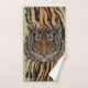 Se trata de una cara elaborada y decorada de un tigre sobre un fondo de piel de tigre para el contraste. Negrita y salvaje con magnetismo animal. Perfecto para el cuarto de baño de temática tigre. Encantador y exótico.