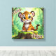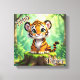 Una imagen adorable para la habitación de un niño. Un dibujo animado lindo de un tigre bebé sentado en el bosque que se ve adorable.