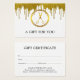Esta es una plantilla de certificado de regalo minimalista elegante con fondo blanco y dos círculos de oro falso y patrón de tijera. Este diseño elegante es ideal para salones de belleza y barberías.
