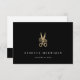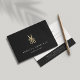 El elegante diseño de un certificado de regalo muestra su nombre y/o nombre de negocio con letras blancas bajo un par de tiras estilistas en falso Relieve metalizado dorado adornado con flores, en un rico fondo negro. Añada la redacción deseada del certificado de regalo y la información de contacto comercial en el reverso. Una moda y una elección elegante para salones y peluqueros.