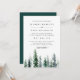 La elegante invitación a la boda de otoño o invierno incluye una mezcla de altos pinos acuáticos en tonos grises y verde cazador. Personalice los detalles de su boda en moda con letras blandas y sin negro. Una hermosa elección para elegantes bodas de otoño o invierno en ambientes montañosos o forestales.
