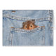 hamster tímidamente buscando el bolsillo de los jeans azules