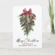 Moderna y Elegante Tinta de Caligrafía Script Pinos Acuarela Invierno Verdor con Lazo de Cinta Roja Borgoña Adornos de Navidad, Piñas y Bayas de Acebo Feliz Navidad Tarjeta Doble de Fiesta