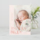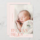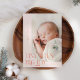 Elegante y moderna tarjeta de anuncio de nacimiento para Navidades con un texto de tipografía que dice "dedos pequeños, gran alegría". ¡Esta es una tarjeta de anuncio de nacimiento para las fiestas! ¡Añade tus fotos, estadísticas de nacimiento y un mensaje! El fondo es melocotón.