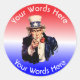 Este pegatina patriótico personalizado está decorado con el Tío Sam que puede ser personalizado con una elección de palabras arriba y abajo que te permiten personalizarlo con el nombre de una persona, lugar, posición, etc.
