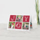 Comparte saludos de vacaciones con estas tarjetas de felicitación de Navidades plegados que incluyen tres de tus fotos cuadradas favoritas en un diseño cuadrado horizontal, alternando con "JOY" en tipografía blanca festiva formada por Navidades botánicos y flores de vacaciones, con un fondo rojo. Agregue el saludo de su personalizado a lo largo de la parte inferior y personalice el interior con un mensaje y una firma preimpresos.