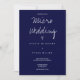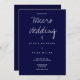 Invitación a una boda para un micro boda. Esta invitación se hace en azul oscuro y blanco con suficiente información para ganar el día. Simplemente agregue su información, añada esta invitación a su carrito y disfrute de su boda pequeño e íntimo.