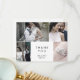 Esta tipografía de moda 4 plantilla de fotos tarjeta de agradecimiento es perfecta para un boda moderno. El diseño es sencillo y presenta una tipografía minimalista clásica en blanco y negro con un toque rústico de boho. Personalizable de cualquier color. Mantenga el diseño minimalista y elegante, tal como está, o lo personalice añadiendo sus propios gráficos y obras de arte. Personalice la parte posterior de la tarjeta con sus nombres y un mensaje de agradecimiento. Como alternativa, deje en blanco la sección de plantilla de mensajes de agradecimiento para escribir a mano una nota personalizada en cada tarjeta después de su llegada. Estas tarjetas se pueden usar para un boda, una ducha de novia o cualquier evento especial.