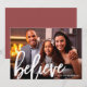 Inspiradora felicitación de Navidad con la palabra 'cree' en escritura de pincel blanco y una foto con un hermoso fondo de color rosa.