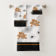 Este diseño de toallas de tipografía para Halloween incluye arañas y telarañas que recorren un cartel naranja de 'Truco o trato'......una araña colgante y una viuda negra hacen que esto sea especialmente espeluznante! Hemos añadido un borde negro sólido con una estrecha franja naranja como ejemplo, pero tratamos de añadir un violeta brillante o incluso un fondo gris oscuro para un aspecto completamente diferente. Te sumará a tu decoración de vacaciones. Busque ID680 para ver otros productos que coincidan con este patrón.