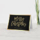 Esta moderna y elegante tarjeta navideña dice "Feliz Navidad" en la moderna tipografía de oro falso, con un borde a juego sobre un fondo negro. Hay un espacio para personalizar tanto en la parte delantera como en el interior de la tarjeta.