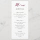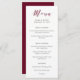 Este impresionante menú boda presenta caligrafía de color marsala/burdeos, junto con un texto negro moderno, sobre un elegante fondo blanco. Perfecto para un boda formal y tradicional con un giro moderno.