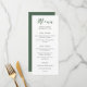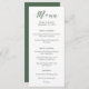 Este impresionante menú boda presenta una caligrafía verde profunda y un texto negro moderno, con un elegante fondo blanco. Perfecto para un boda formal y tradicional con un giro moderno.