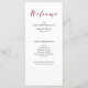 Este impresionante programa de bodas presenta caligrafía de color marsala/burdeos junto con texto negro moderno, sobre un elegante fondo blanco. Perfecto para un boda formal y tradicional con un giro moderno.