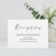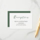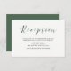 Esta impresionante tarjeta de recepción de boda presenta caligrafía verde profundo junto con texto negro moderno, sobre un elegante fondo blanco.