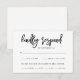 Estas sencillas y modernas tarjetas de respuesta de elección de comida de boda presentan una tipografía de escritura negra de moda sobre un fondo blanco para un aspecto muy elegante.