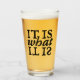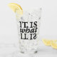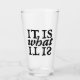 Tipografía en blanco y negro que dice "Es lo que es" en forma cuadrada. Originalmente pintado a mano en papel.