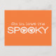 Halloween de divertida y extravagante tipografía de Spooky Save the Date Postcard Invitación en naranja y blanco con un divertido diseño de texto de la palabra "espeluznante" con un par de encantadores fantasmas acechando las dos letras "O". Este diseño de moda es perfecto para anunciar su cita boda alrededor o en Halloween. Fácil de personalizar, simplemente agregue los detalles de su boda en los campos de texto proporcionados. Para obtener más opciones de personalización, haga clic en el botón "Personalizar It" para cambiar fuentes, colores de texto o mover el elemento de diseño.