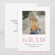 Anuncia tu graduación a familiares y amigos con esta tarjeta de anuncio de graduación de foto personalizable. Cuenta con tipografía en negrita en brillo rosa falso. Personalice este anuncio de graduación de brillo rosa agregando una foto, nombre, escuela y otros detalles. Este anuncio de graduación de foto moderno está disponible en otro papel de tarjeta.