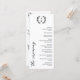Elegante programa de bodas 9x4 en diseño de tipografía en blanco y negro con monograma de laurel y hermosas fuentes. Programa de bodas de tipografía con monograma de vegetación y hermosos tipos de letra. Programa de boda plano con un elegante monograma y hermosos tipos de letra y detalles verdes en negro contra fondo blanco.