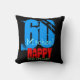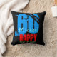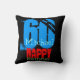 Diseño tipográfico con gran número azul + nombre en azul + letras humorísticas para Feliz en rojo + cumpleaños en amarillo. Diseño en almohada cuadrada con texto por 60 años para el personalizar. Puede cambiar fácilmente texto (fuente, color, tamaño y posición) haciendo clic en el botón personalizar. Tarjeta de saludo coincidente. Perfecto para él.