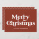 Elegante tarjeta de vacaciones de moda que muestra "Feliz Navidad" en la parte delantera con un fondo blanco, de estilo retro, con un fondo marrón o color de su elección. Personalice la parte delantera de la tarjeta de vacaciones no fotográfica agregando su nombre/nombre comercial, el año u otro texto personalizado. La parte posterior de la simple tarjeta de vacaciones muestra su mensaje personalizado con un patrón de semicírculo blanco con un fondo marrón. Diseñado para coordinar con nuestra colección de tarjetas de Navidades de tipografía retro.