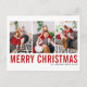 Feliz Navidad! Postal de collage de fotos de Navidades de personalizable con tipografía simple roja y negra. Personalice agregando tres fotos, nombres, año y otros detalles. Esta postal moderna para Navidades está disponible en otros colores y cartón.