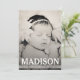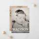 Bonitas tarjetas fotográficas con fondo de fondo de papel de fondo floral francés vintage. La tipografía blanca sobrepone la fotografía completa de la hemorragia con el nombre de las niñas. Añade tu propia foto de una niña de forma rápida y sencilla haciendo clic en la pequeña miniatura de la fotografía de muestra para luego subir la tuya propia. Verá los cambios hechos en la pantalla inmediatamente. La fabulosa fotografía retrato usada en esta moderna tarjeta plana de fotos de sangre completa es gracias a la talentosa fotógrafa Carrie Keller Bitting del Woven Nest Photography Pty Ltd - Carolina del Norte, Estados Unidos.