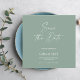 Anuncio de guardar la fecha de boda con tipografía elegante moderna verde salvia.