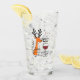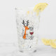 A funny and cheerful Christmas holiday design showcases a reindeer wrapped in festive lights, holding a glass of red wine, surrounded by colorful stars. The handwritten text says, "Tipsy and Bright." This delightful design is available on a variety of products, making it a perfect gift for wine lovers.