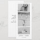 Esta elegante tarjeta blanca de "save the date" para bodas presenta un diseño sofisticado que incorpora una llamativa tira de fotos en blanco y negro, lo que permite a las parejas mostrar tres imágenes queridas. Combinando perfectamente el estilo y el sentimiento, esta invitación sirve como un hermoso anuncio de "save-the-date" que invita a los invitados a compartir la alegría de la próxima celebración. Su estética atemporal garantiza que será un recuerdo memorable para todos los que la reciban.
