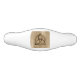 Un tirón de cerámica con un simple triquetra celta de color entrelazado con un círculo que forma un símbolo trinitario contra un fondo de madera, representando la unidad espiritual con lo divino.