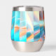 Una representación colorida y muy abstracta de una puesta de sol. Los colores van desde el azul del cielo, hasta el amarillo del Sol, hasta las nubes naranja y roja en el horizonte. Personalizar agregando su propio texto.