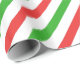 Rayas de rojo brillante y verde sobre un papel de envoltura de fondo blanco, en la diagonal para un efecto de bastón de caramelo