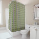 El patrón original de ZoeSPEAK en esta cortina de ducha es una mezcla de elementos clásicos y modernos. Rayas de lavanda pálida sobre un suave ascenso verde entre filas de la fotografía original de Zoe de hojas verdes oscuras en un ramo alrededor de un punto morado. Y hay puntos más pequeños en verde y naranja en las rayas, con líneas amarillas delgadas formando cuadrados detrás de todo. Los colores se están calmando.