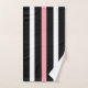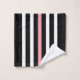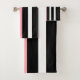 Patrón de rayas verticales en blanco y negro con acentos de rayas rosas.