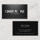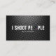 "Tiro tarjeta de visita profesional divertida de la lente de cámara del fotógrafo de la gente". Fondo metálico de la parrilla.