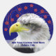 Añada cualquier texto personalizado a estas estrellas de tiro y pegatinas de diseño de rayas patrióticas rojas, blancas y azules con una gran fotografía de un águila norteamericana calva en el medio. Excelente como ventas al por menor y pegatinas promocionales o incluso para la nueva selección de águilas o regalos de votantes el día de las elecciones. Consigue muchos de estos para tener a mano para el Día de la Conmemoración, el Día de los Veteranos, el 4 de julio, el Día del Trabajo, el Día de las Elecciones, ¡incluso para los Scouts Águilas! Se muestra el popular pegatina de forma redonda. Agregue texto o simplemente elimine el texto de ejemplo si no es necesario. ¡Haz grandes sellos para sobres y especiales favores también!