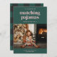 Una divertida y adorable tarjeta de Navidad con una disposición de una foto y tipografía en negrita que dice, "¡Es la temporada para pijamas a juego y estamos aquí para eso!". Esta tarjeta es perfecta para esas tradiciones familiares de pijamas a juego anuales, ¡vamos, sabes que lo haces!. Esta ingeniosa y humorística tarjeta de Navidad seguramente traerá alegría y felicidad esta temporada navideña. Por favor, revise todas las opciones de colores disponibles, así como la opción de descarga digital.