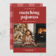 Una divertida y adorable tarjeta de Navidad con una disposición de una foto y tipografía en negrita que dice, "¡Es la temporada para pijamas a juego y estamos aquí para eso!". Esta tarjeta es perfecta para esas tradiciones familiares de pijamas a juego anuales, ¡vamos, sabes que lo haces!. Esta ingeniosa y humorística tarjeta de Navidad seguramente traerá alegría y felicidad esta temporada de fiestas. Por favor, revise todas las opciones de colores disponibles, así como la opción de descarga digital.