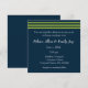 Una banda de rayas verdes hace estallar en esta invitación del boda de los azules marinos