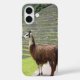 Llama tocando los pasos de Machu Picchu en el Perú.