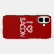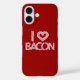 El corazón del bacon dice con cartas creadas a partir de tiras de tocino. Color de fondo personalizado.