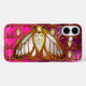 Moth Art Nouveau estilizada con piedras preciosas.Elegante diseño de estilo vintage, con vibrante piedra mágica rosa de fucsia 3D de Bulgan Lumini.