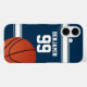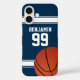 ¿Le gustaría este diseño en una combinación de colores diferente? Por favor contáctenos a través de nuestra tienda de regalos Bonanza y estaremos encantados de asistirle con su solicitud de personalizado. Perfecto para los aficionados al baloncesto o para los jugadores de baloncesto cuyos colores de equipo son azul oscuro y blanco, con un diseño de estilo jersey de baloncesto deportivo de color azul oscuro con rayas blancas y texto de personalizable para su nombre y número. El diseño también incluye un baloncesto.