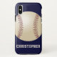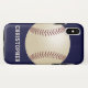 Este funda para el iPhone o Samsung Galaxy está decorado con un gran béisbol de fondo azul oscuro, y personalizado con nombre u otro texto. Es fácil modificar o eliminar el texto de ejemplo. Qué complemento maravilloso para tu nuevo teléfono móvil. Un regalo maravilloso para jugadores de béisbol o softball, fans o entrenadores. Tarjetas de felicitación coincidentes, papel envolvente y otros regalos disponibles en www.zazzle.com/store/SocolikCardShop. Todos los derechos reservados © 2024 Alan & Marcia Socolik.
