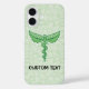 Ceguera soltera caduceus con hojas de menta sobre fondo verde claro y sin costura. Texto personalizado.