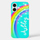 Bonito de diseño de arcoiris chicas funda de dispositivos. Personaliza con tu propio nombre hasta 6 letras, nombres cortos perfectos o apodos. Este ejemplo dice Ashley. Diseñado por Sarah Trett para www.mylittleeden.com