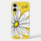 Un caprichoso dibujo de margarita con un fondo de color sólido y un lugar para agregar un nombre u otro texto. Un diseño moderno y animado con colores de moda.