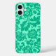 Estuche de teléfono en un patrón vintage de damasco floral William Morris, realzado digitalmente y colorido, en turquesa suave sobre un fondo acuático pastel